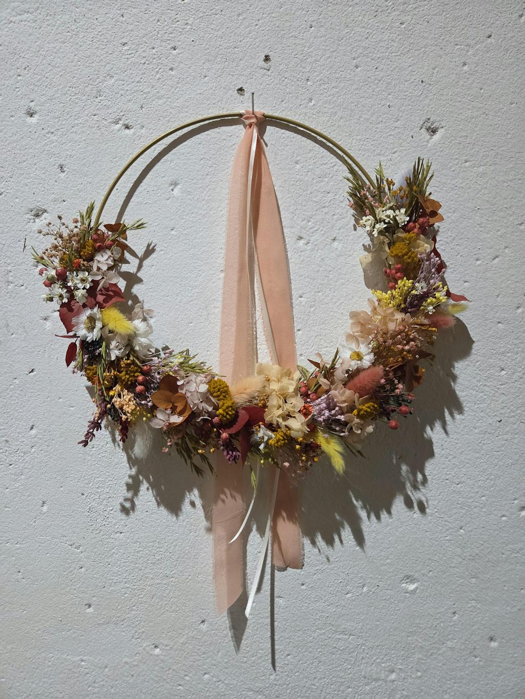 Mach’s dir gemütlich und werde kreativ: In meinem Herbstkranz-Workshop zeige ich dir Schritt für Schritt, wie du mit Trockenblumen, Gräsern und herbstlichen Akzenten einen stimmungsvollen Kranz gestaltest – perfekt als Deko für die Tür oder den Tisch.